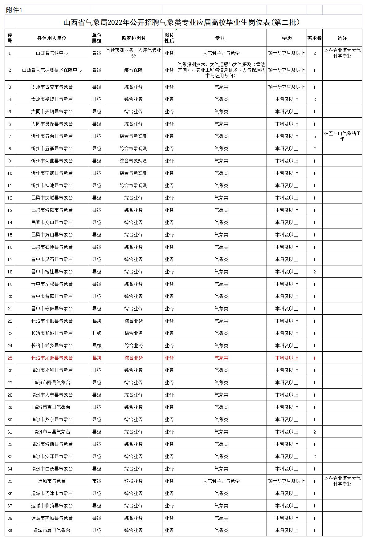 1.山西省气象局2022年公开招聘气象类专业应届高校毕业生岗位表(第二批).xlsx