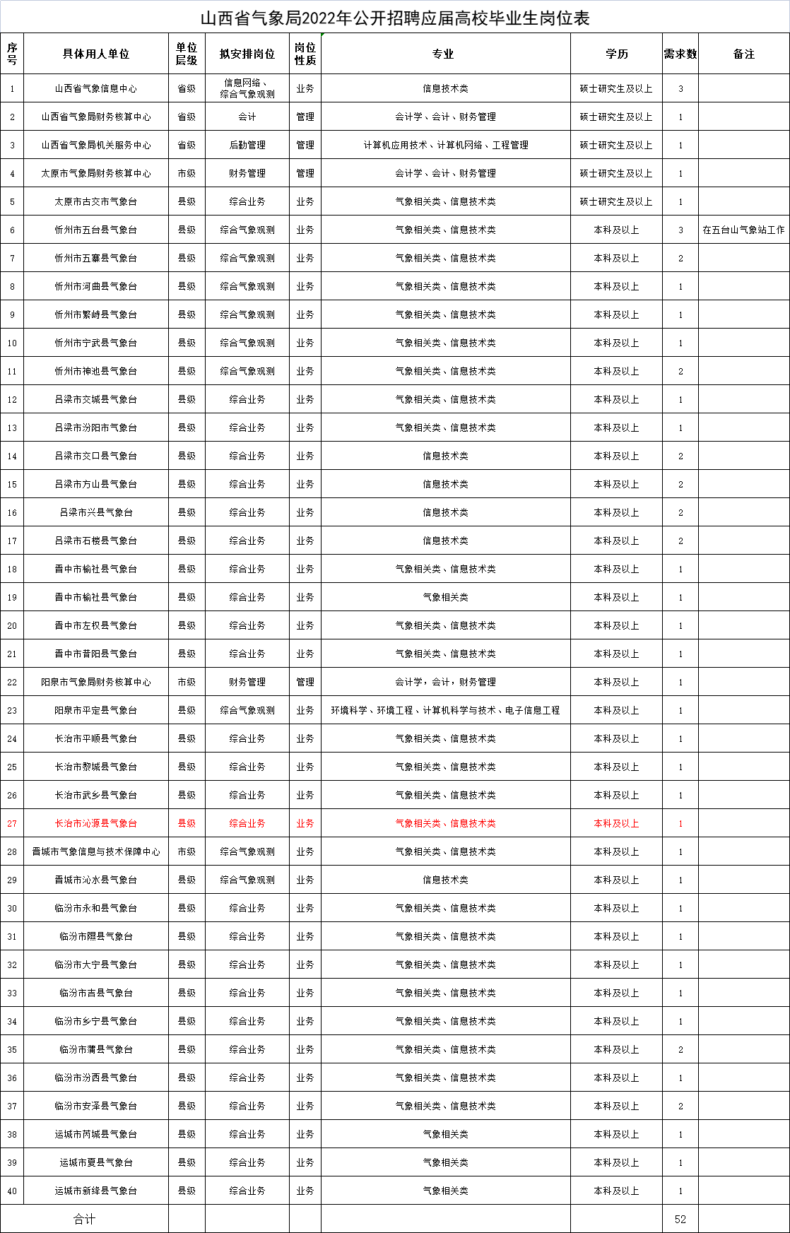 | 标题:山西省气象局2022年公开招聘应届高校毕业生公告 | |