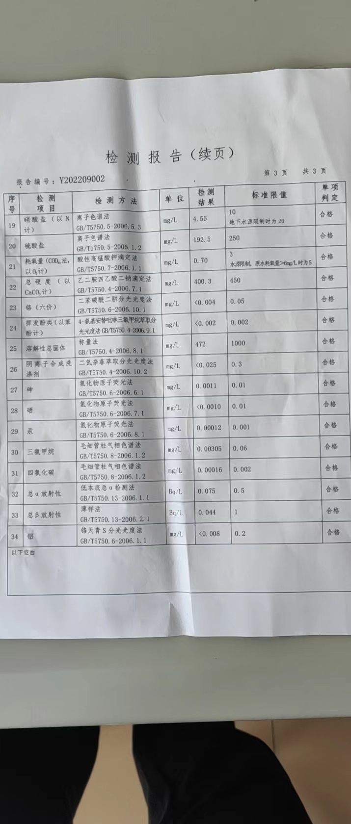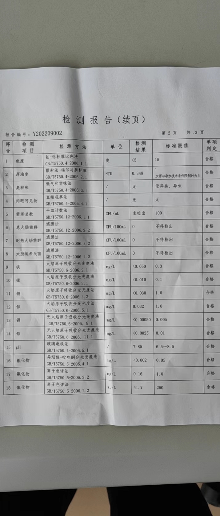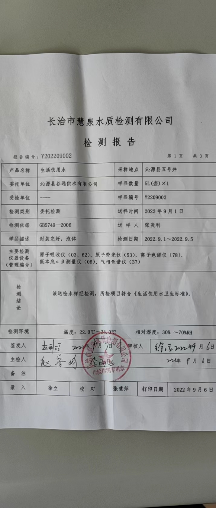 | 标题:沁源县谷远供水有限公司2022年第三季度水质检测报告 | |