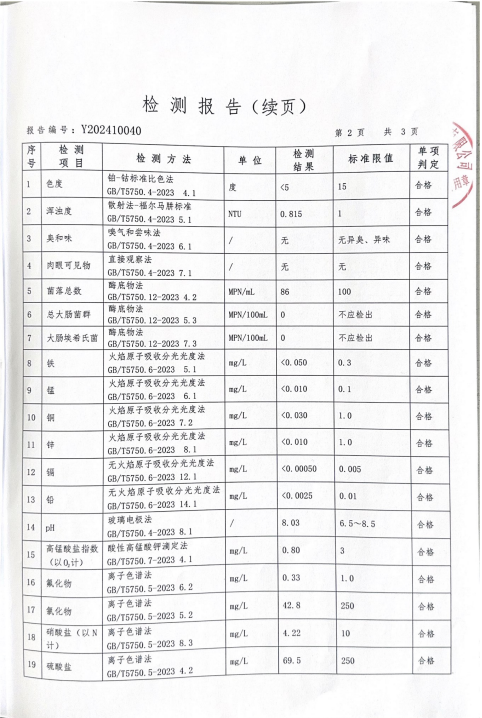 | 标题:沁源县城乡水务有限公司2024年第三季度水质检测报告 | |