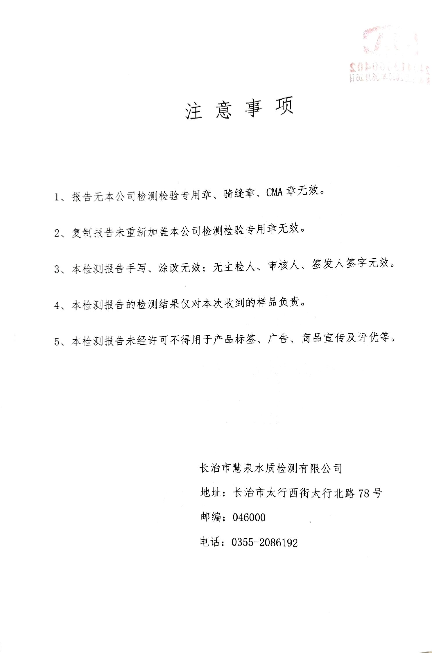 该检验报告由长治市慧泉水质检测有限公司对沁源县城乡水务有限公司供水水质监督检验。