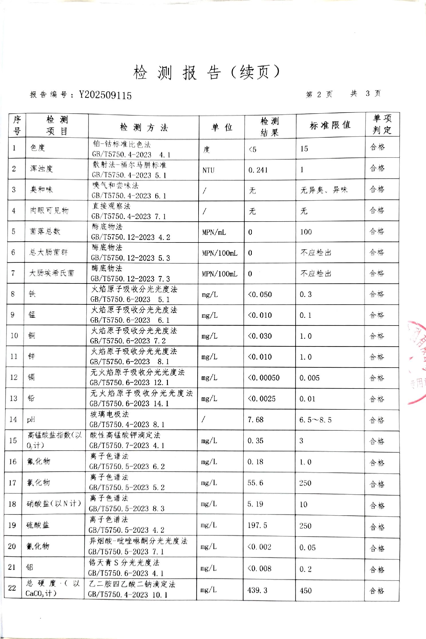 | 发文机关:沁源县城乡水务有限公司 | 主题词:2025年第三季度;水质检测报告 |