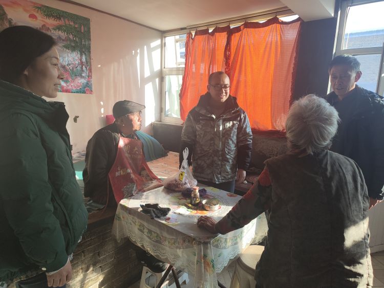 韩洪乡组织委员、宣传委员宋程成在奠基村开展“两节”期间送温暖活动。