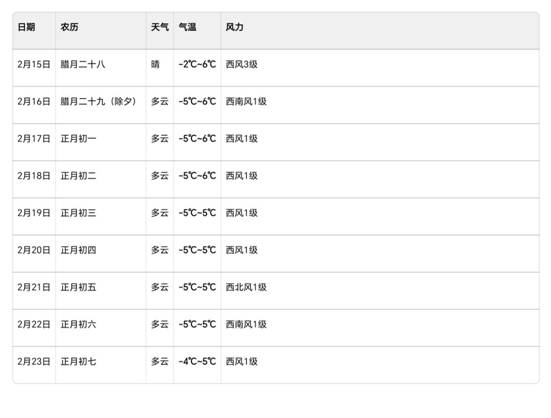 温馨提示:天气状况以每天气象部门预测为准,春节期间车流量较大,请各位驾驶员谨慎驾驶。