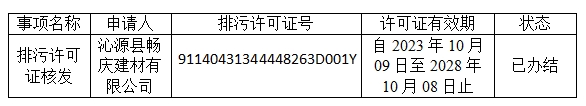标题沁源县畅庆建材有限公司排污许可证申领核发公告