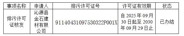 沁源县金石建材有限公司排污许可证重新申领核发公告