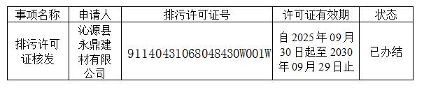 沁源县永鼎建材有限公司排污许可证重新申领核发公告