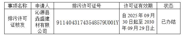 沁源县垚盛建材有限公司排污许可证重新申领核发公告