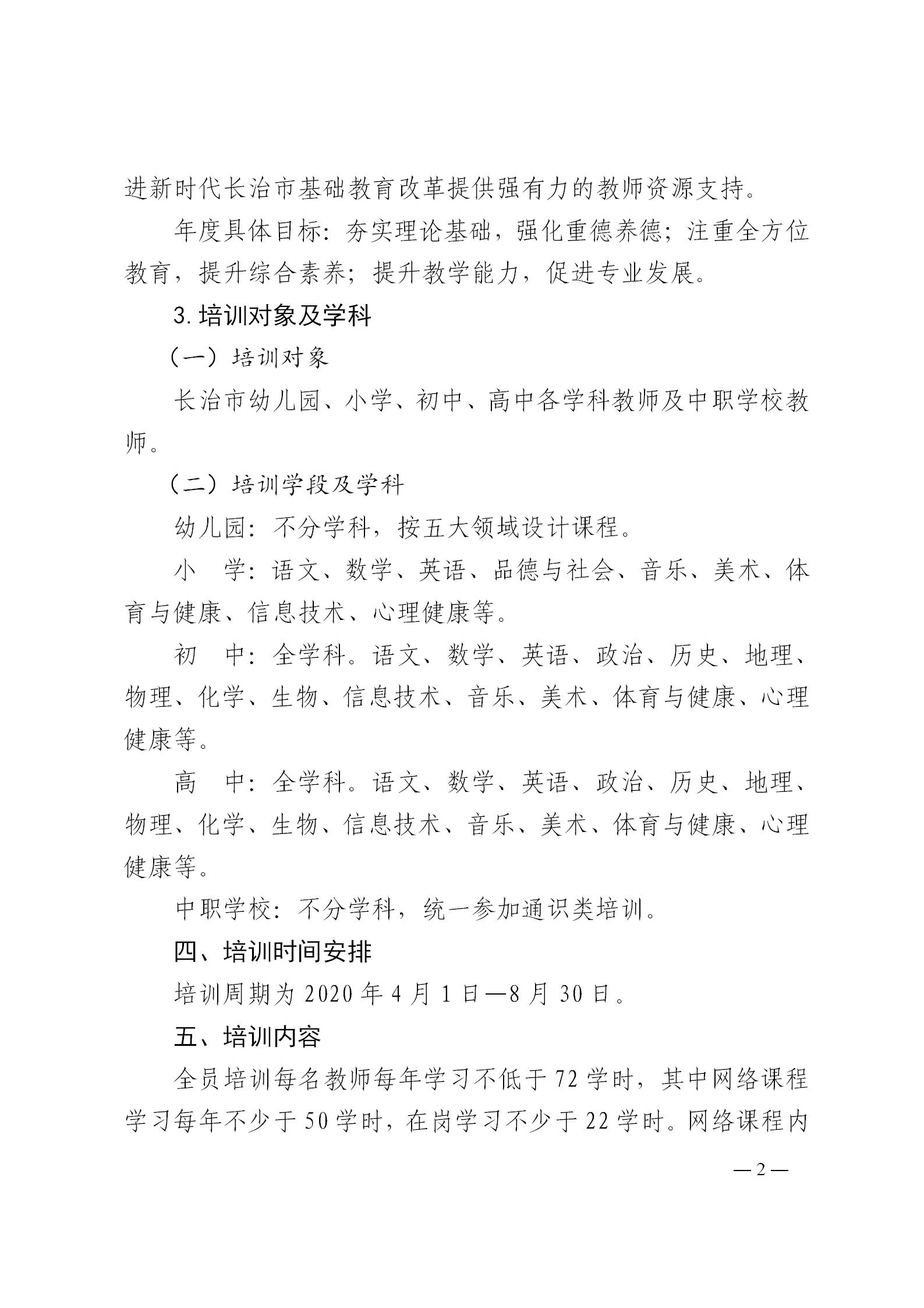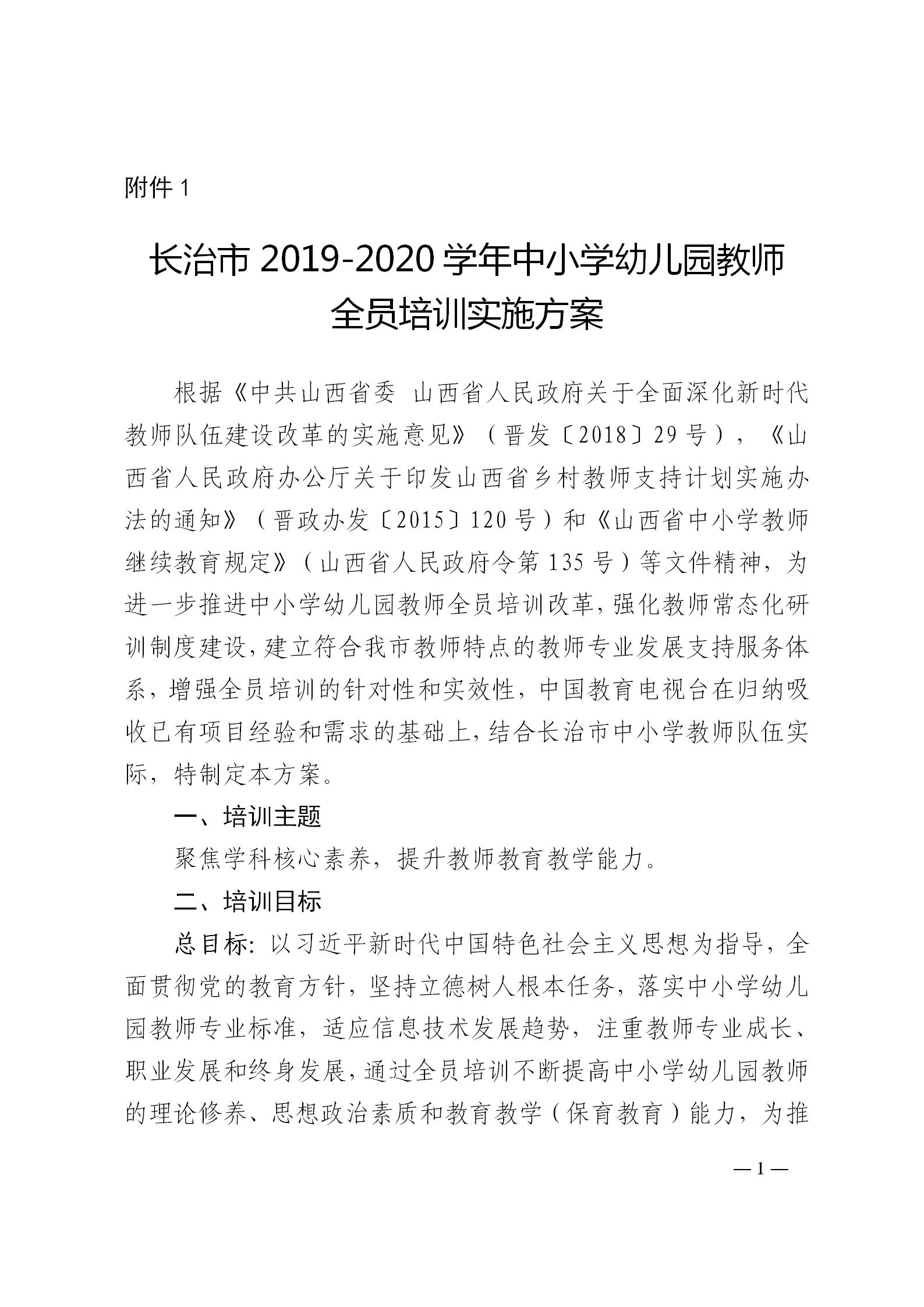 附件:1.长治市2019-2020学年中小学幼儿园教师全员培训实施方案