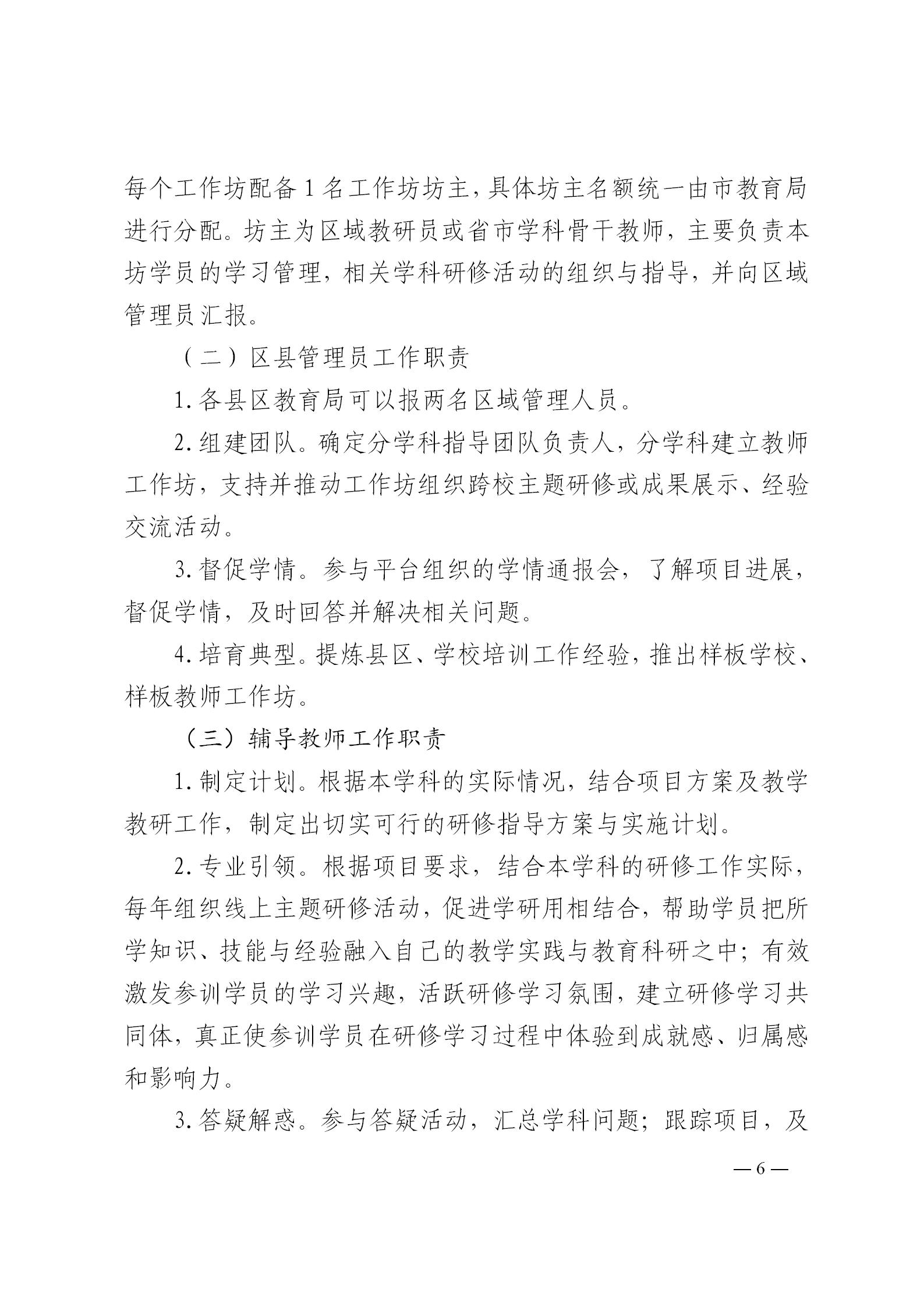 全员培训工作实行“管理线、指导线、执行线”三线支撑的项目实施机制。各县区要建立系统化的项目管理体系,落实层级化的专人负责制,确保层层有人领、事事有人抓、环环有人管。各县区教育局和各中小学、幼儿园要加强组织领导,明确工作职责,实行精细管理,努力做好网络研修与校本研修融合提升,确保所有应参训教师如期学习。