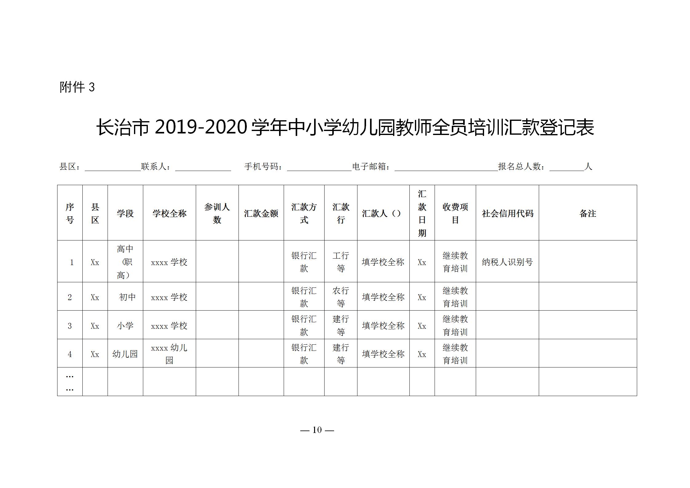 3.长治市2019-2020学年中小学幼儿园教师全员培训汇款登记表