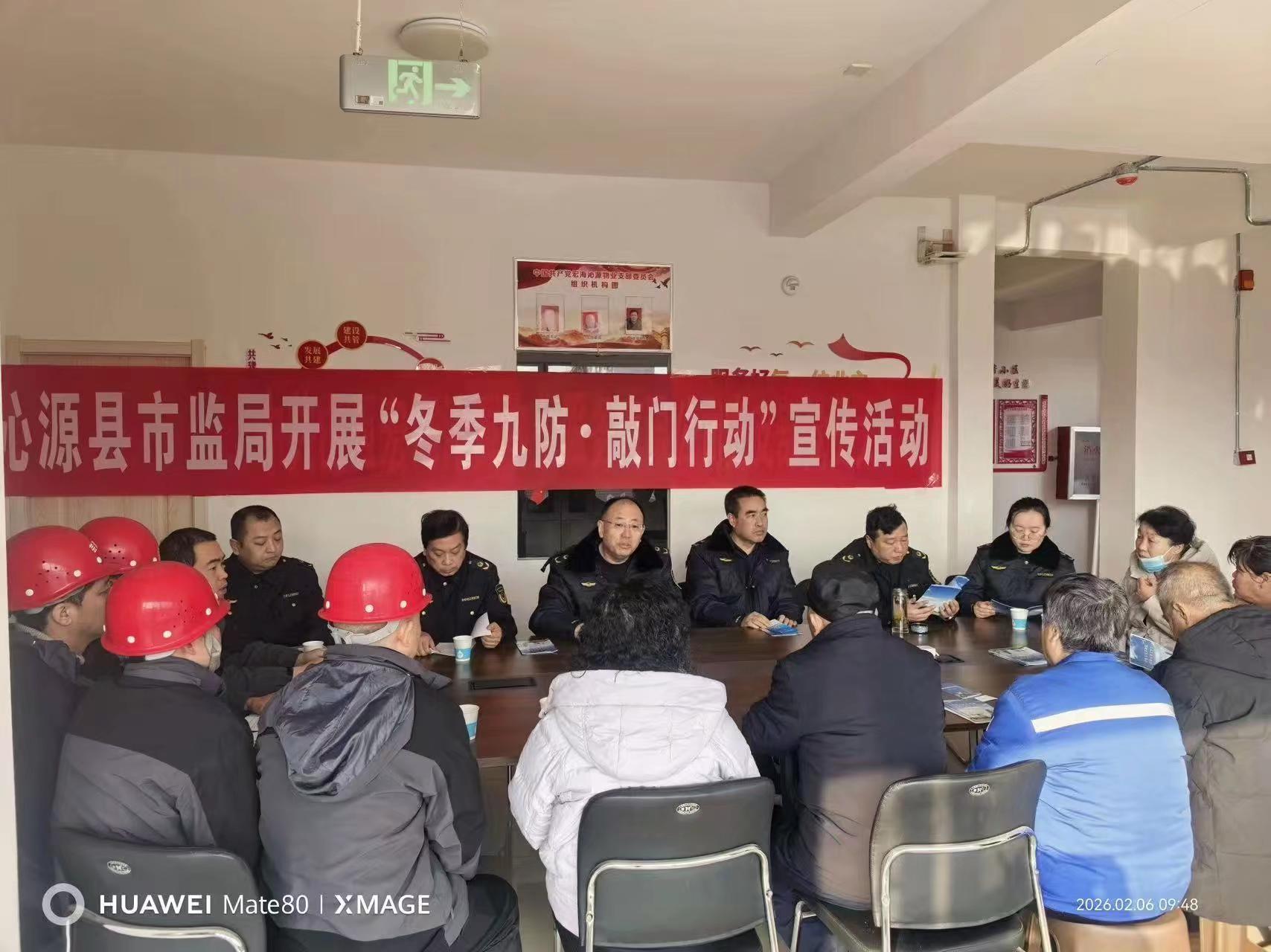 县市监局深入宜兴佳园小区开展“冬季九防 敲门行动”宣传,工作人员通过科普宣讲、发放宣传手册等方式,向物业和小区居民普及电梯、电动自行车等安全知识,筑牢居民安全防线。