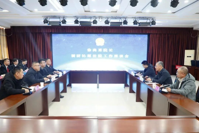 在王陶人民法庭,徐尚勇现场察看了审判法庭、调解室等场所,深入了解基础建设、人员配备及服务基层群众情况。在县法院机关,徐尚勇详细了解“一站式”多元解纷和诉讼服务体系建设、案件受理流程、便民利民举措等情况。