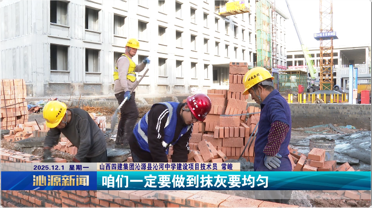 在新建沁河中学项目建设现场,施工人员正按照技术规程,分区同步作业,全力加快教学楼主体二次结构施工、宿舍楼围墙砌筑、隔墙板安装、活动场土方回填作业。