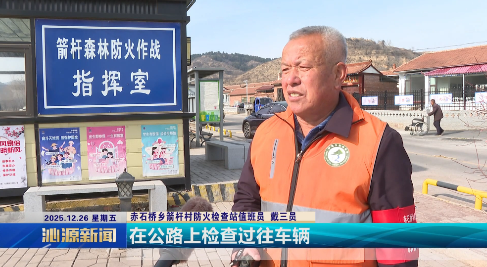 走进赤石桥乡,防火旗随风而立,宣传标语清晰醒目,森林防火意识深入人心。在箭杆村防火检查站,值班员戴三员正仔细对进山人员和车辆进行登记检查,严格管控火源入山,牢牢守住防火第一道防线。
