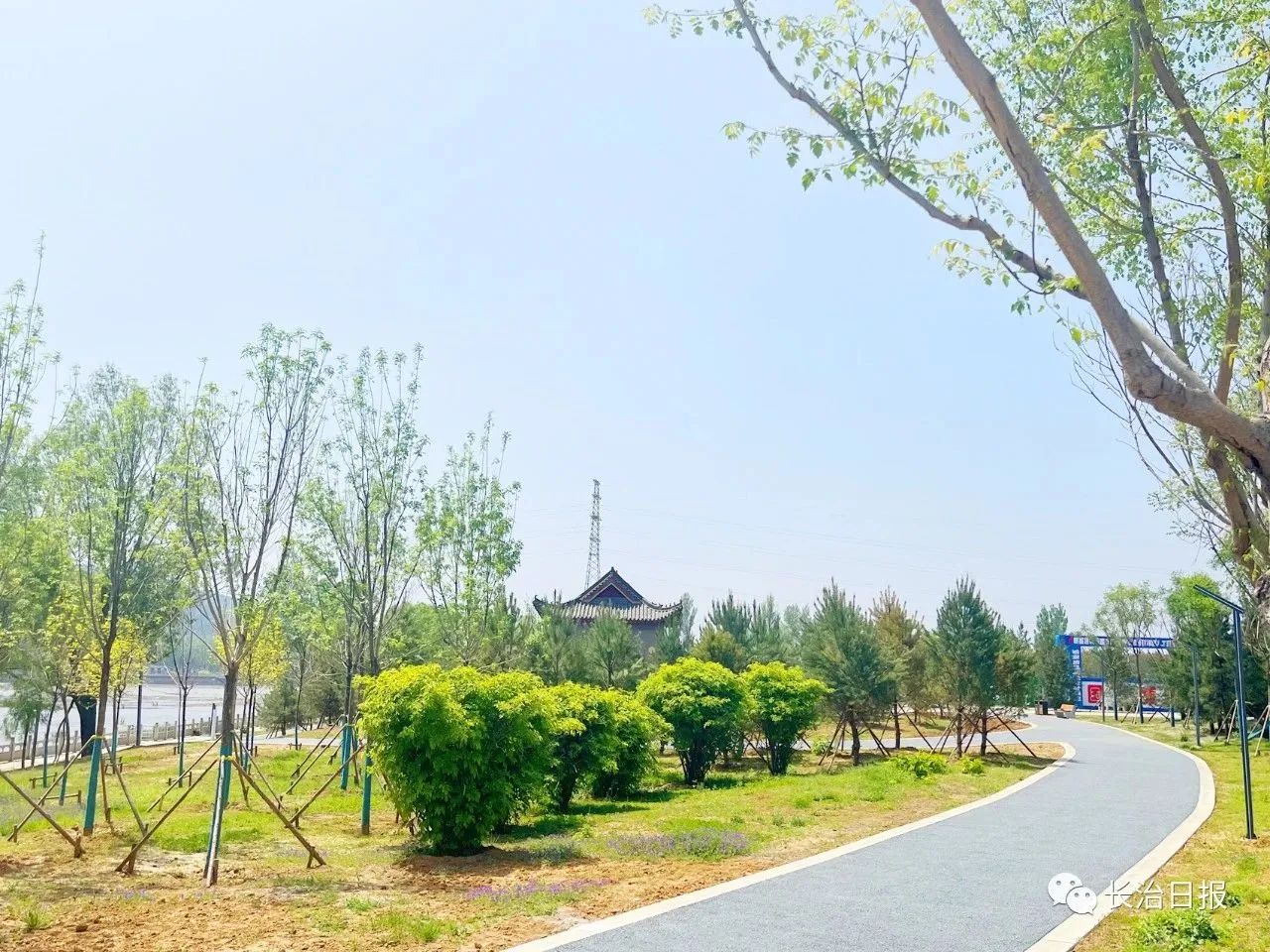 沁河县城段综合治理项目负责人李王刚介绍说:“我们还在沿线设置了户外客厅、健身乐园等,建设园内面积最大的广场——碧波广场,采用流线型设计元素,意为‘沁河之水’,寓意沁河之水碧波荡漾、源远流长,北侧设置4座特色景观灯,夜晚呈现脉冲流水的效果,寓意为‘四季平安、国利民福’。在园林绿化工程方面,针对沁源‘油松之乡’的美誉,配合观赏性落叶树种如五角枫、银杏等彩色树种以及时令性花卉地被,整体打造四季有景、三季观色的优美景观。”公园内选用的树种和植被具有涵养水源、防风固沙、净化空气、美化环境等生态效益。