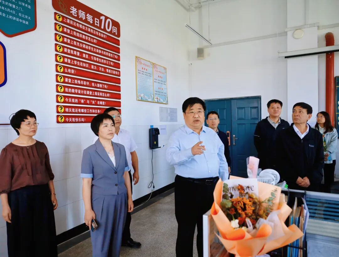 9月10日,第41个教师节当天,县委书记赵永进,县委副书记、政法委书记郭晓方分别带队前往部分学校走访慰问一线教职工,向全县广大教师和教育工作者致以节日问候和崇高敬意。县领导王宏斌、冯华、王鸿、李建萍、郭红艳、高雪峰、李洋参加。