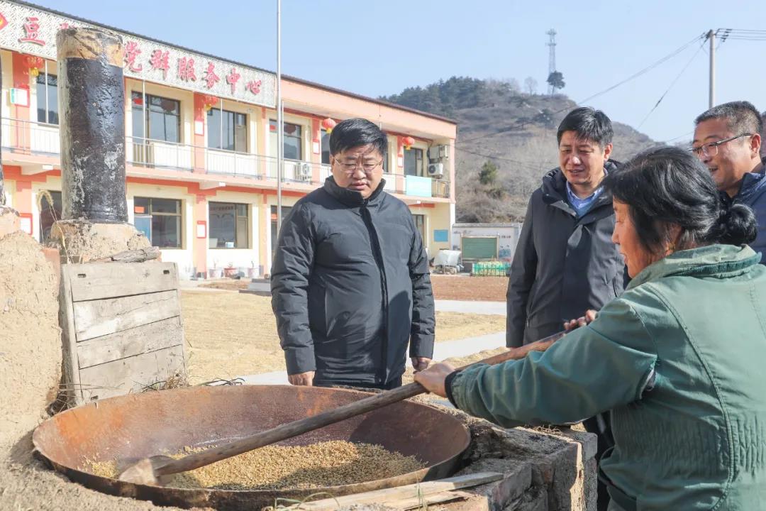来到王陶镇豆壁村,赵永进一行走进党群服务中心,院子里铺满晾晒的莜麦和高粱,几个村民忙的不亦乐乎,在和煦阳光的照射下显得勃勃生机。脱贫户郑建萍在一旁炒莜麦,赵永进走上前饶有兴趣与其攀谈起来。了解莜麦产量,询问莜麦收成,关心莜麦销量,并走进加工车间看制作流程和包装产品。得知是村集体为帮助脱贫户种植的莜麦后,他说,巩固脱贫成果要持之以恒,实施乡村振兴要提前谋划。发展农业产业,要结合实际,立足资源,找准优势,突出特色,把优势产业做出特色,把特色产业做出规模,使特色产业成为乡村振兴的支柱产业。针对如何实施乡村振兴,赵永进说,村里的事,依靠的是老百姓。要充分调动村民积极性、主动性、创造性,激发内生动力,挖掘内在潜力,把群众动员起来,让村民参与进来,真正让他们的钱袋子鼓起来。同时,支村两委班子要增强凝聚力,提升战斗力,带领村民走上乡村振兴致富路。