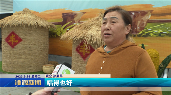 县委领导来重视,台台搭在咱郭道,把起伞伞我就唱,唱唱秧歌我心舒畅。从一届到三届,我都参加了,这次搭在郭道丰收节,咱们农民也高兴,平时我在家里也哼一哼,唱一唱,感谢搭建的平台,秧歌人家可以得到展示。