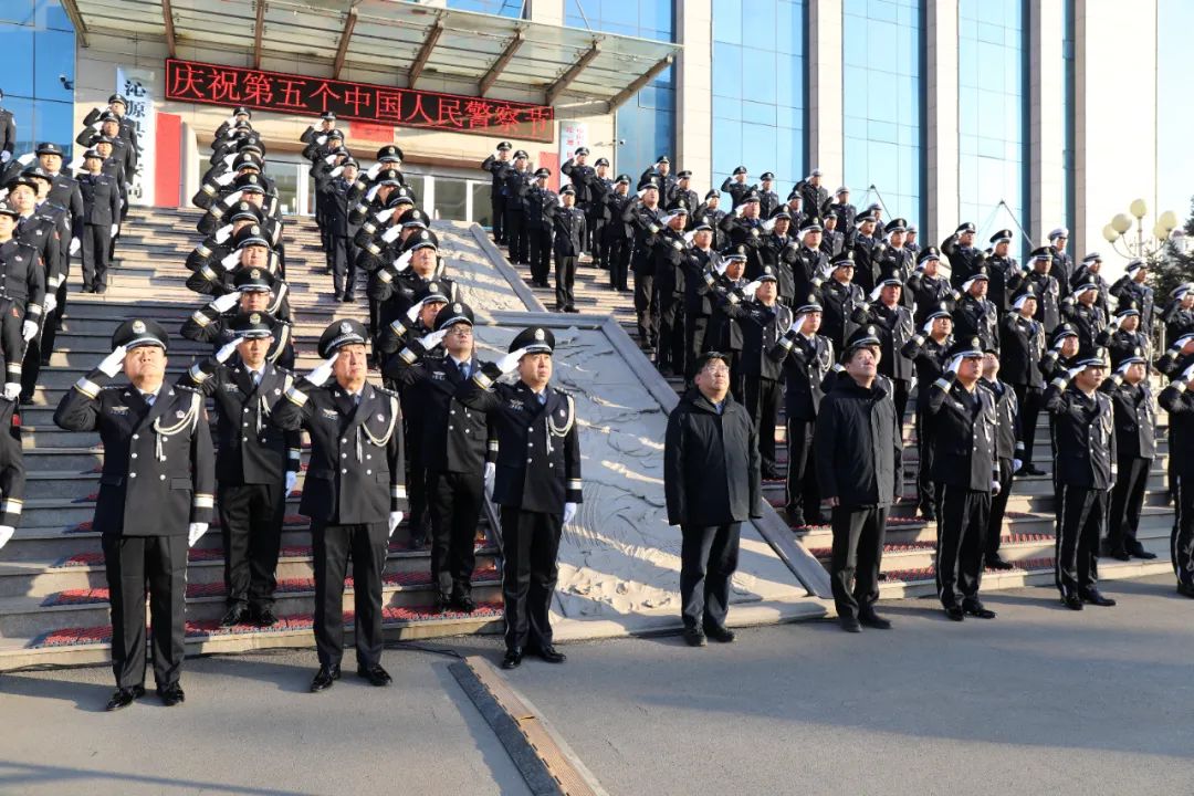 上午9点整,在庄严雄壮的国歌声中,五星红旗冉冉升起。公安干警身着制服,整齐列队,精神抖擞,高举右拳,重温入警誓词,奏唱警察之歌,誓言铿锵有力,歌声气势如虹,表达了对党和人民的无限忠诚,对公安事业的无限热爱。