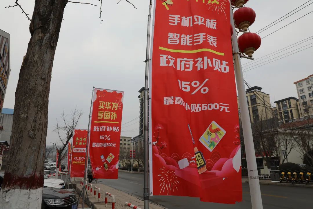 手机数码产品门店外,“国补”海报、横幅吸引眼球。自2025年手机、平板、智能手表等数码产品购新补贴活动上线以来,迅速点燃了消费者的购物热情,掀起了“焕新”热潮。
