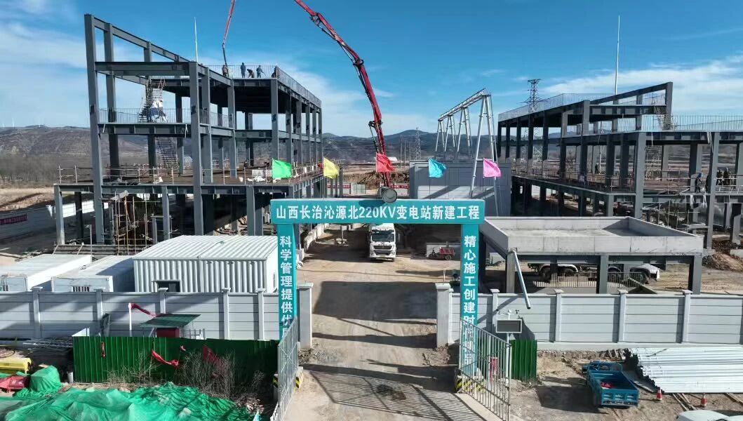 在距离景凤镇光伏园区数十公里外的王陶镇王头村,沁源北220千伏变电站项目建设现场一派繁忙景象。随着220千伏配电装置楼与110千伏配电装置楼顺利完成框架结构封顶,工程已正式从主体施工转入电气基础工程实施阶段。这个总投资2.4亿元的变电站项目,预计2026年1月竣工投运。