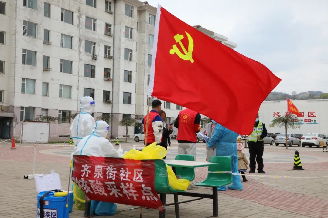 各核酸检测点,党旗高高飘扬。社区工作人员、医务工作者、机关下沉一线干部、在职党员以行动诠释初心,分别承担信息采集、协调联络、秩序维护、后勤保障等工作,确保核酸检测顺利、有序、高效开展。