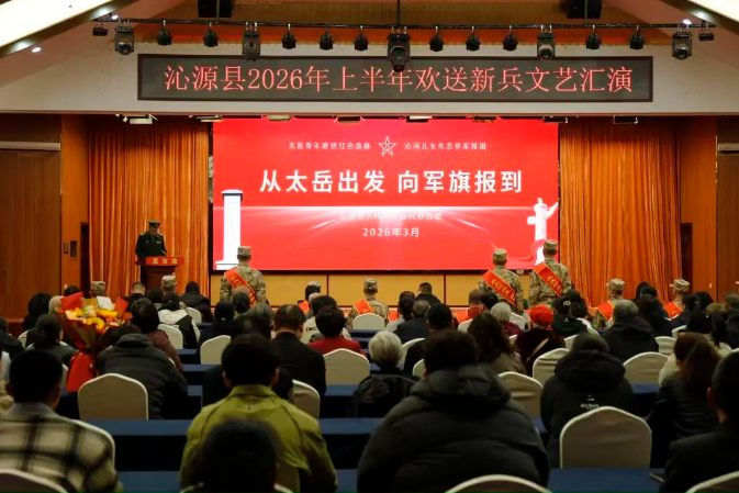 3月18日,沁源县举行2026年上半年欢送新兵文艺汇演。县委副书记、县长郭晓方出席并致辞。县委常委、县人武部部长申小平,县人武部政委焦刚刚,相关单位负责人、乡镇专武干部、入伍新兵及家属参加。